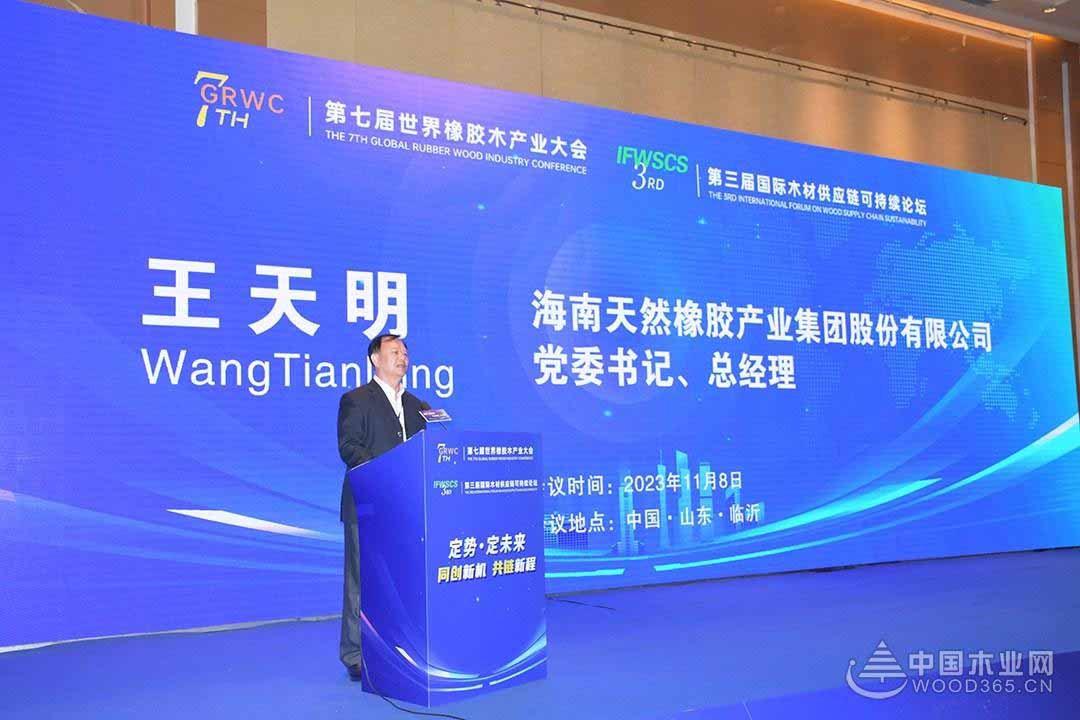 11月8日,由木材節約發展中心、橡膠木及制品國家創新聯盟主辦,山東省臨沂市費縣人民政府承辦的“第七屆世界橡膠木產業大會暨第三屆國際木材供應鏈可持續論壇”在山東省臨沂市召開,海南橡膠受邀參會,海南橡膠黨委書記、總經理王天明代表海南橡膠在會上致辭。